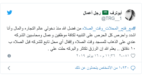 May 31, 2021 · حكم فتح المحلات وقت الصلاة ، هو أحد الأحكام الشرعيّة التي لا بدّ من معرفتها، الصلاة هي أوَّل عمل يحاسَب عليه المسلم يوم القيامة فإذا صلحَت كانت بقية أعماله صالحة وإذا كانت فاسدة فعاقبته وخيمة، والعقاب على ترك الصلاة فتح المحلات وقت الصلاة. حكم فتح المحلات وقت الصلاة.